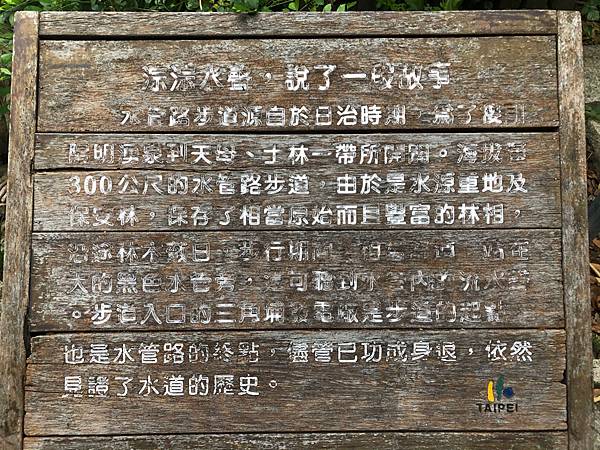水管路步道源自於日治時期,為了接引陽明湧泉到天母、士林一帶所開發.