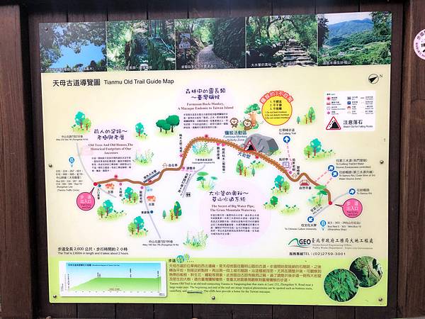 走在古道偶而會和台灣彌猴不期而遇, 步道全長2.6K。